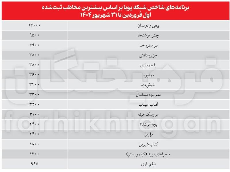 شبکه پویا، چه آن زمانی که نامش «نهال» بود و چه حالا که دوباره نامش «پویا» شده، از شبکه‌های پرمخاطب تلویزیون بوده و اعداد مخاطبانش مچ شبکه امید را خوابانده است. البته این شبکه تا چند ماه قبل آمارهای قابل‌توجه‌تری ثبت کرده و به نظر می‌رسد پویا در روزهای اخیر دچار افت جدی مخاطب شده است. حالا اگر بخواهیم این اعداد و ارقام را با آمار مخاطبان برنامه‌های کودک و نوجوان تلویزیون در دهه هشتاد و نود مقایسه کنیم، وضعیت کنونی فهم شبکه پویا از نسل جدید مشخص‌تر می‌شود.
